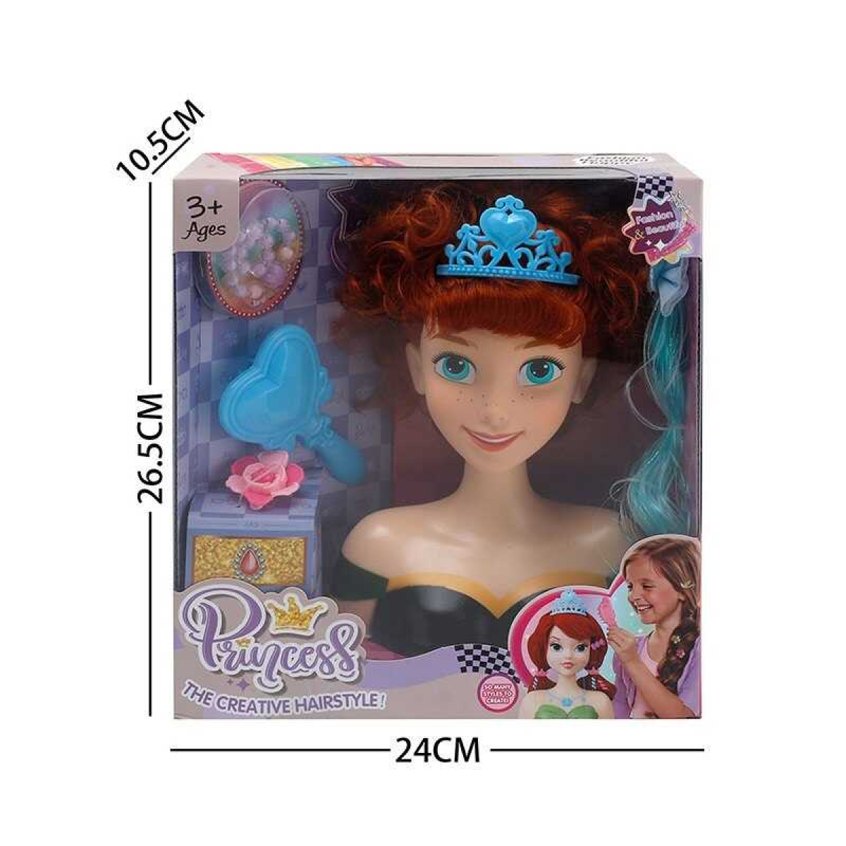 Манекен для зачісок LK 1712 B (48/2) аксесуари, гребінець, корона, пасмо, в коробці