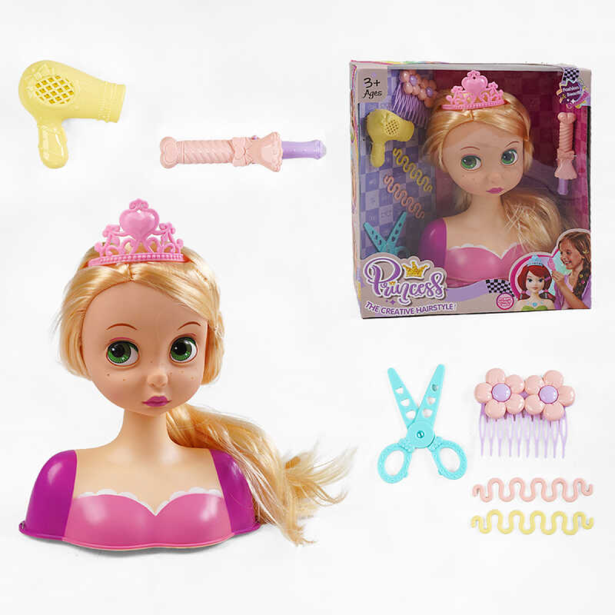 Манекен для зачісок LK 1713 (48/2) гребінець, аксесуари, в коробці