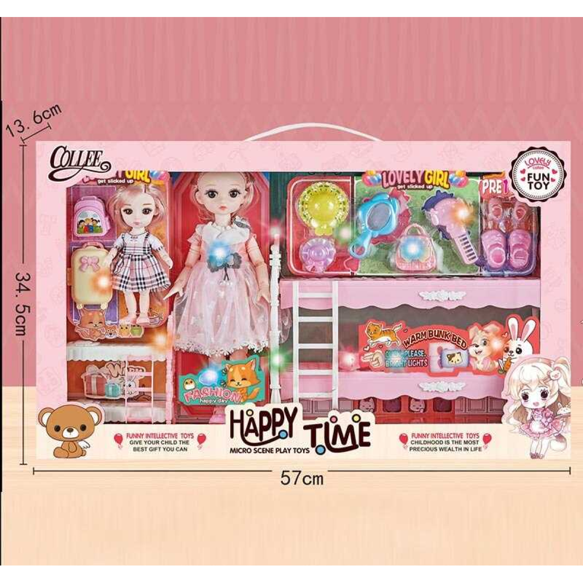 Набір ляльок 2027-18 (12) 2 ляльки, шарнірні суглоби, імітація скляних очей, підсвічування, аксесуари, велосипед, в коробці