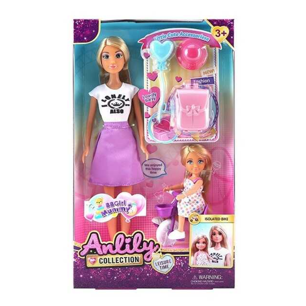 Набір ляльок 616019 (36) 2 ляльки, рухомі кінцівки, шарнірні суглоби, аксесуари, велосипед, знімний одяг, в коробці