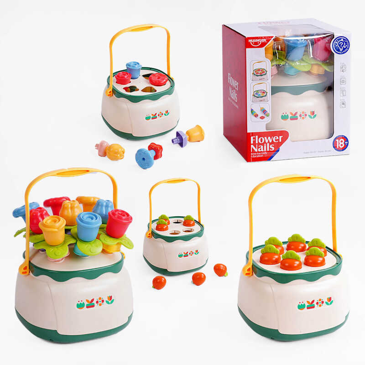 Логічна гра HE 8033 (12) 3в1, тематичний сортер, квітуча пірамідка, гра-шнурівка, гумові елементи, в коробці