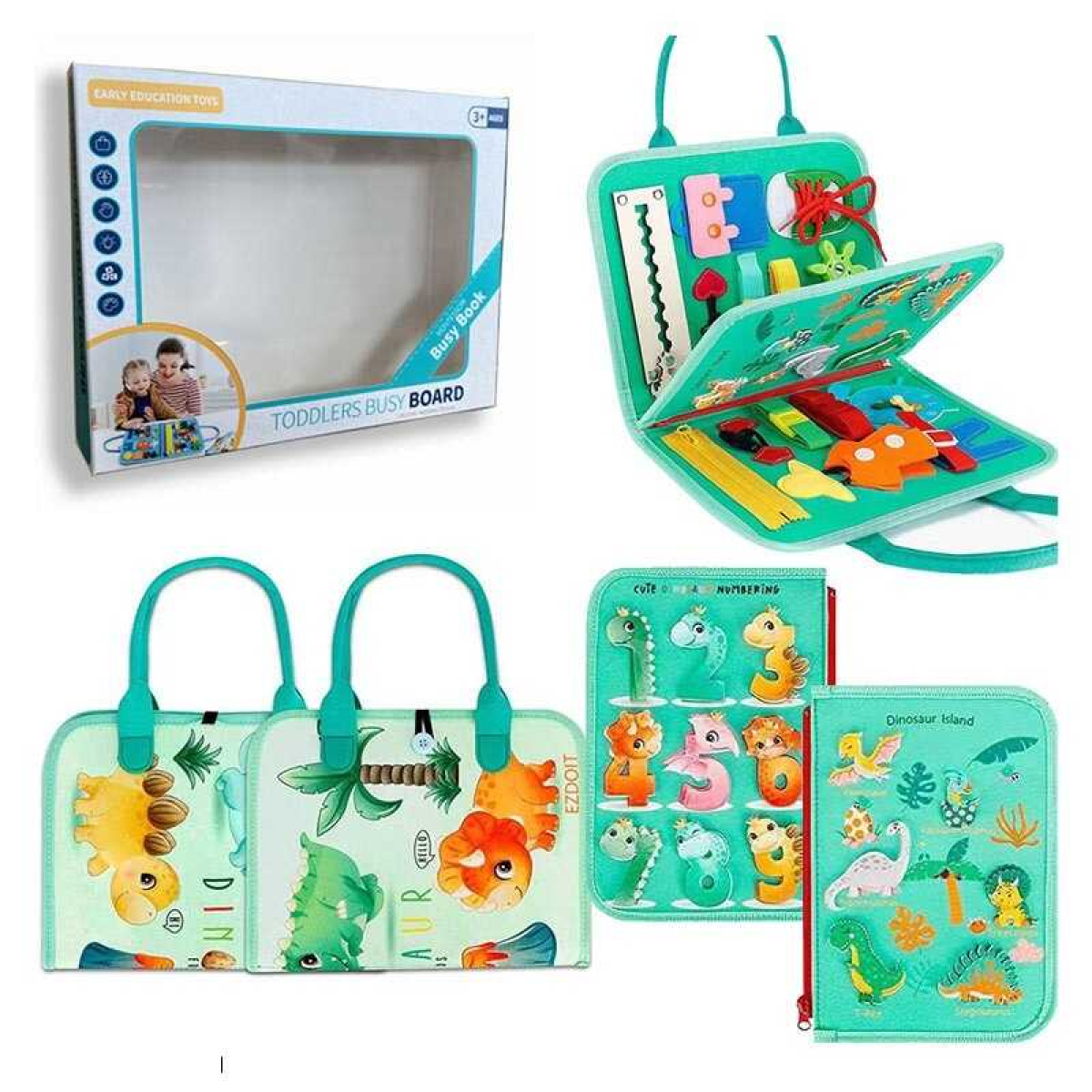 Логічна папка 432-23 A (40) фетр, цифри, англійські назви динозаврів, ремінці, рухомі шестерні, лабіринт для динозаврика, липучки, в коробці