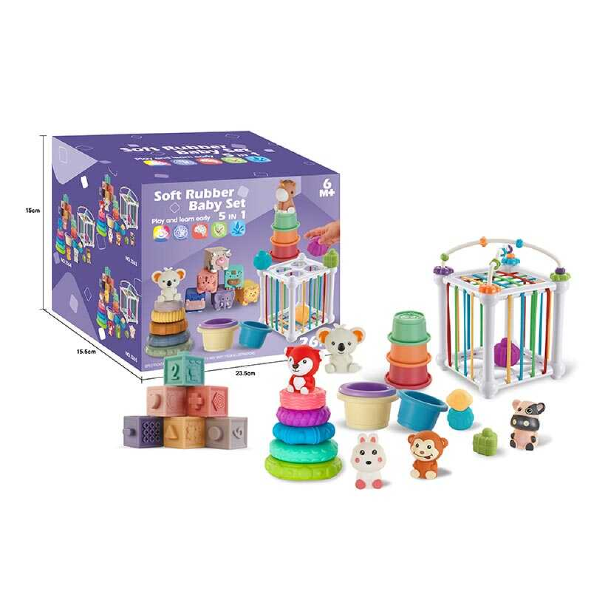 Набір для розвитку 1363 (18) пальчиковий театр, пірамідка, пірамідка з чашечок, кубики, куб із формами, ігри із намистинами, в коробці