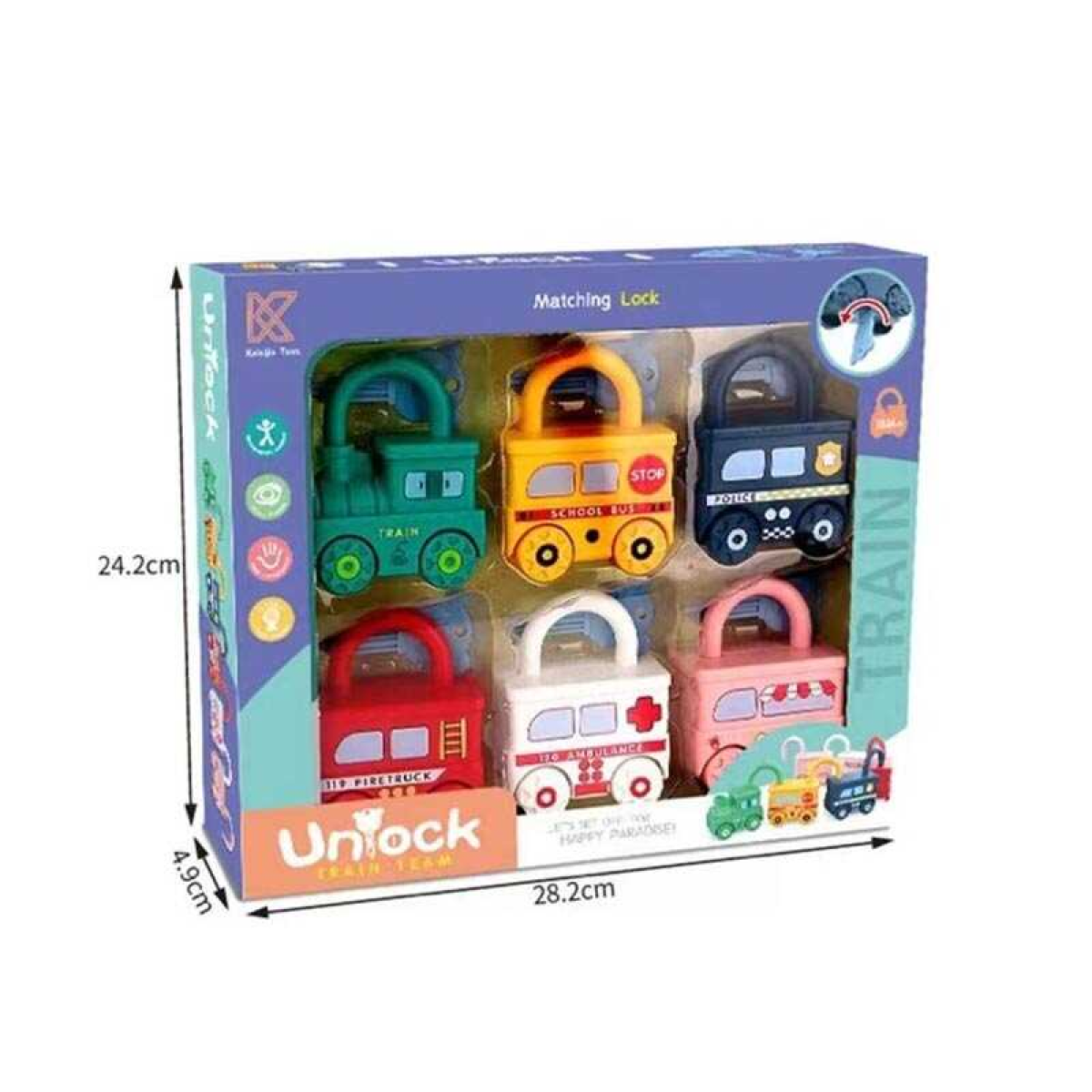 Потяг логічний 228-1 (36), 6 вагончиків, замки, ключі, в коробці