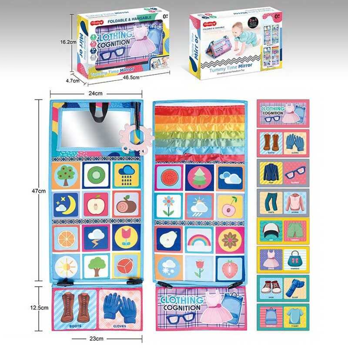 • Розвиваючий плакат 66540-2 (48) “Елементи одягу“, дзеркало, прорізувач, м’яка книжка з шелестючими елементами, пискавка, в коробці