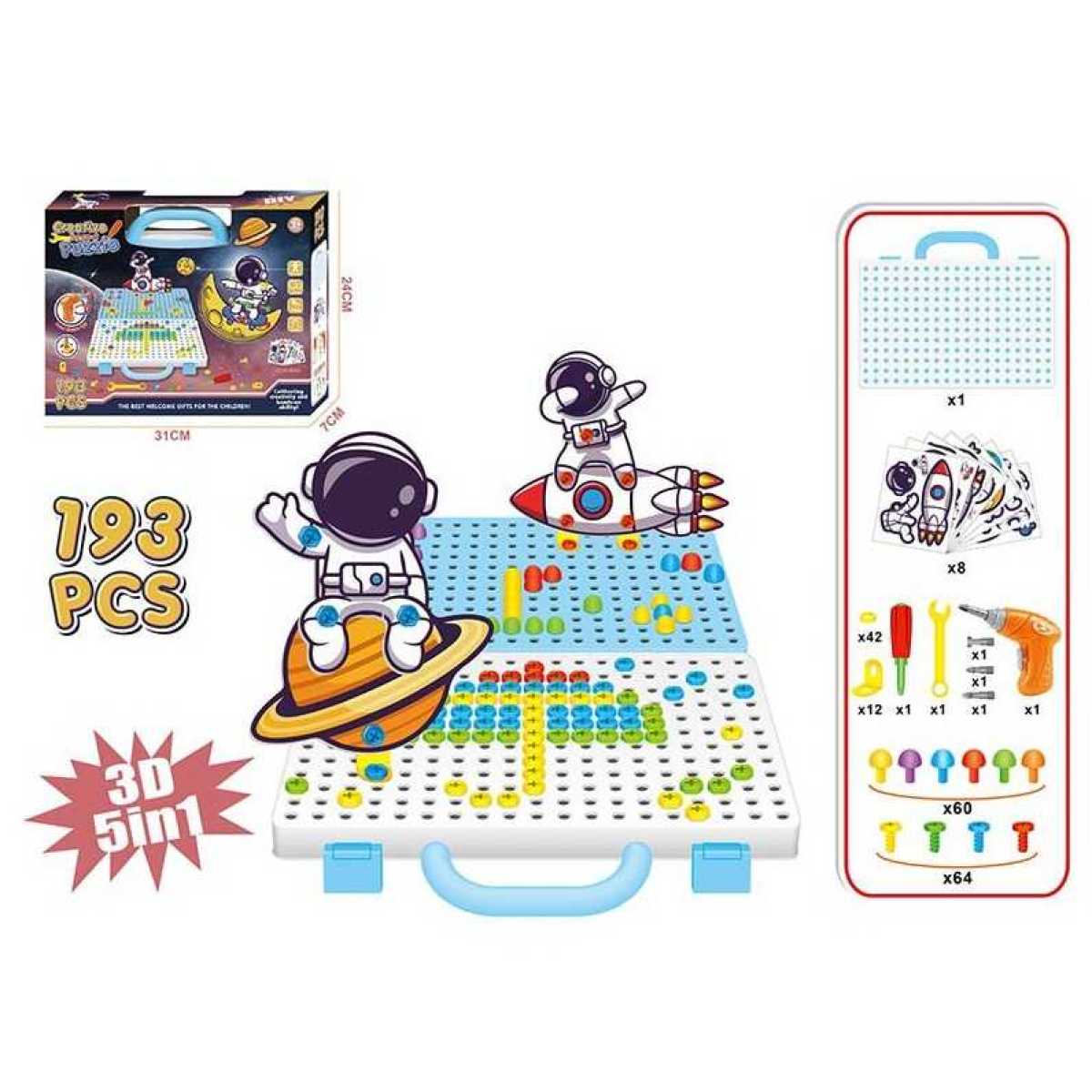 • Мозаїка 666-60 (36/2) “Космос“, 193 елементи, шуруповерт на батарейках, гайковий ключ, викрутка, в коробці