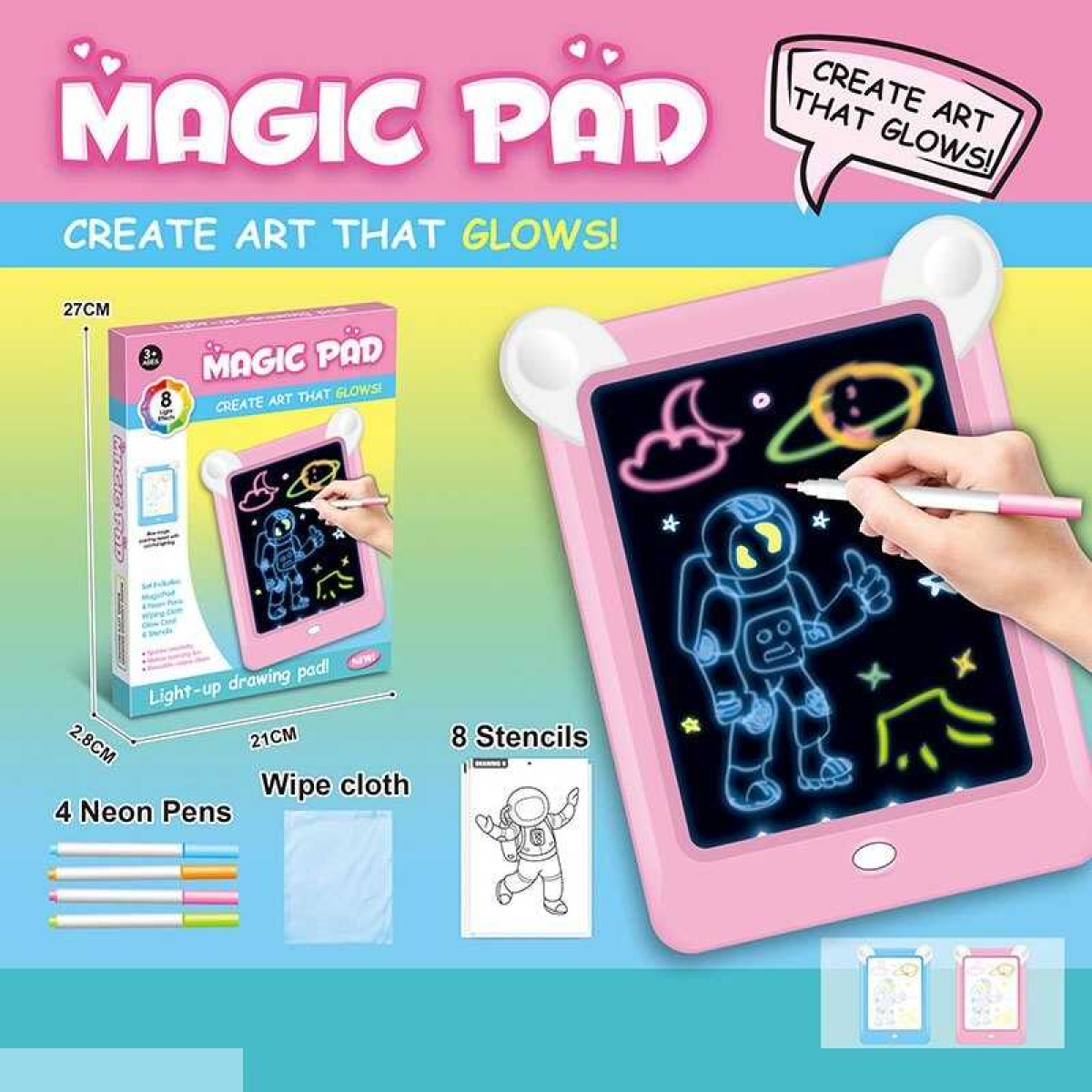Дошка для малювання D 4237 (120/2) 2 кольори, кольорове підсвічування, 4 неонові фломастери, трафарети, в коробці, ВИДАЄТЬСЯ ТІЛЬКИ МІКС ВИДІВ