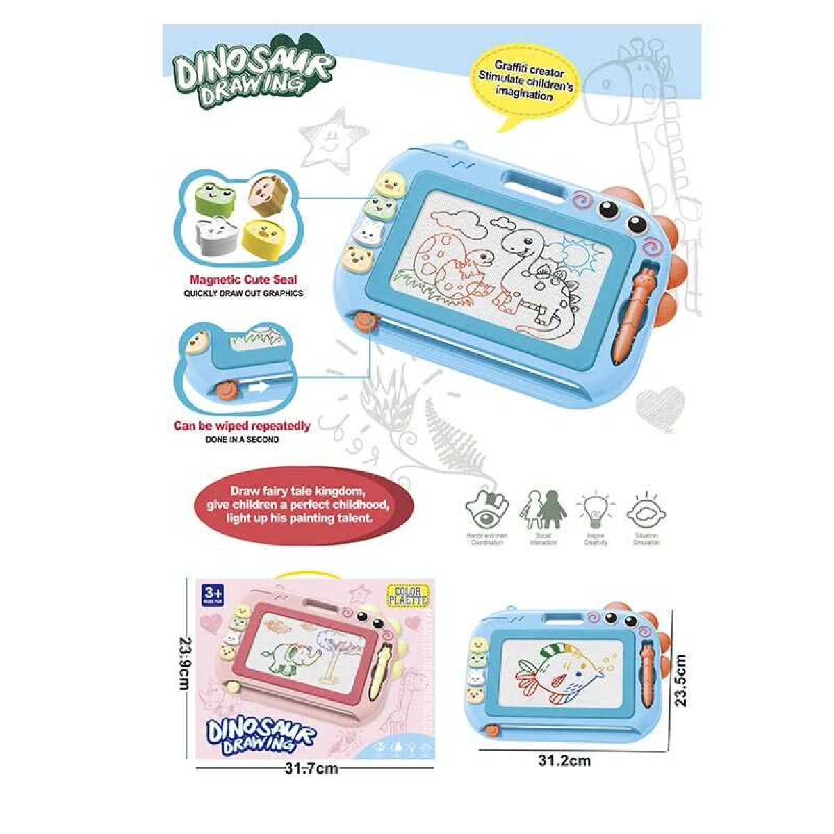Дошка для малювання QS 28002-2 колір-СИНІЙ (72/2) “Динозавр”, магнітна, кольорова, 4 штампи, у коробці