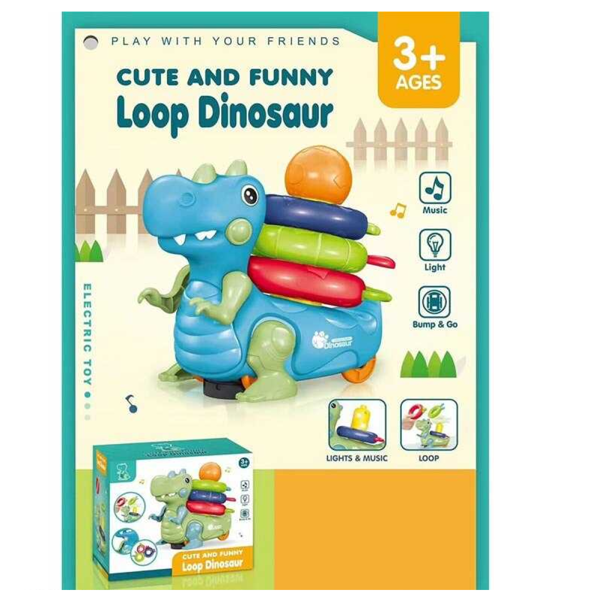 Музична іграшка 2324 (48/2) “Динозавр”, мелодії, підсвічування, колесо вільного ходу, пірамідка, прорізувач, в коробці