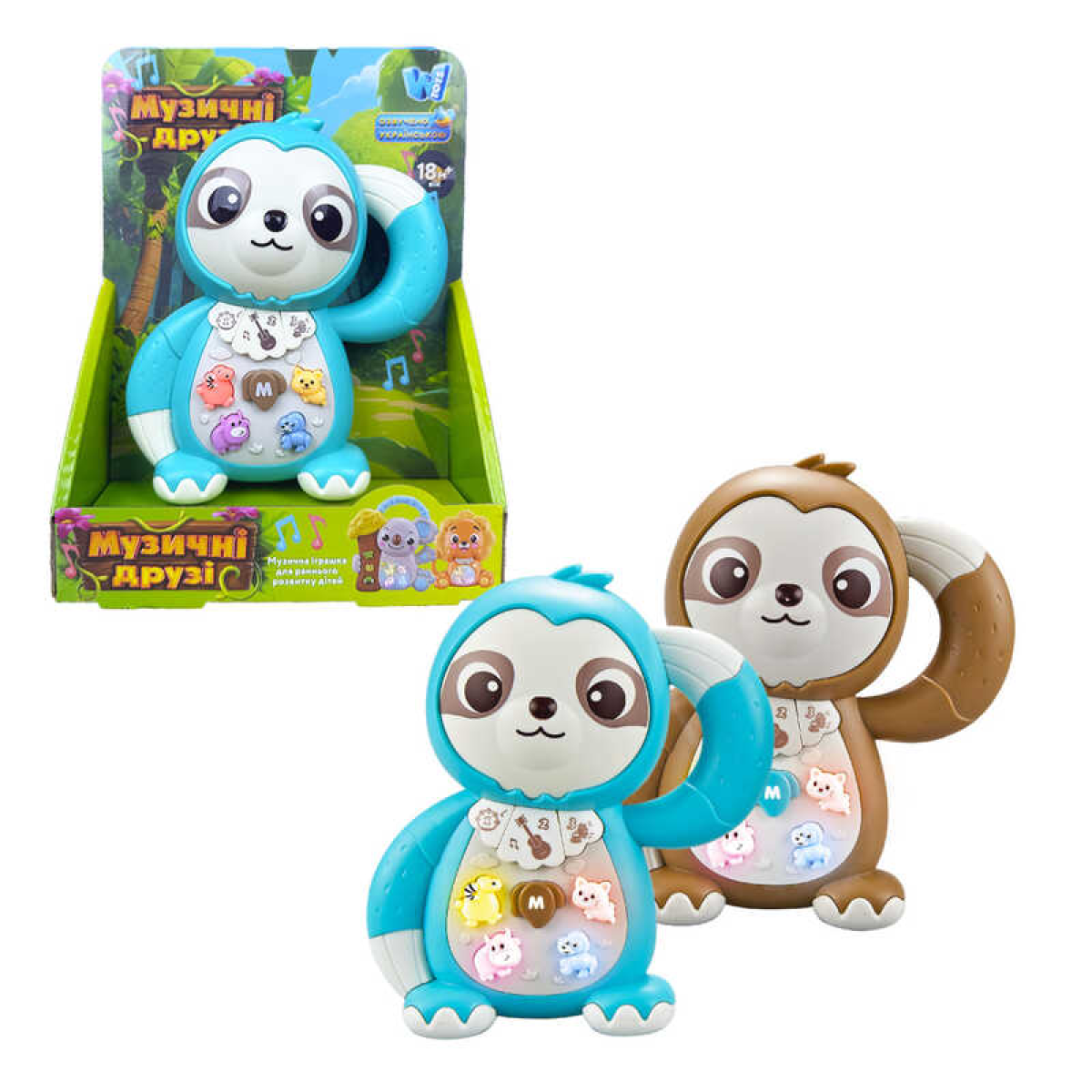 Музична іграшка 99186 (120/2) “WToys“, “ЛІНИВЕЦЬ“, 2 кольори, ОЗВУЧУВАННЯ УКРАЇНСЬКОЮ МОВОЮ, пісні, казки, віршики, підсвічування, цифри, звуки тварин, в коробці