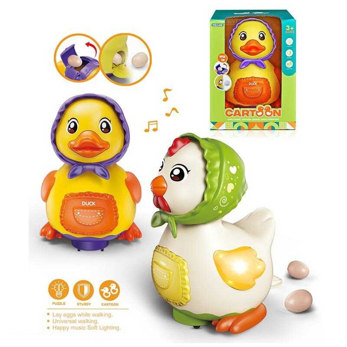 Музична пташка M 06 A (48) 2 кольори, підсвічування, пісні англійською, несе яйця, колесо вільного руху, від батарейок, в коробці