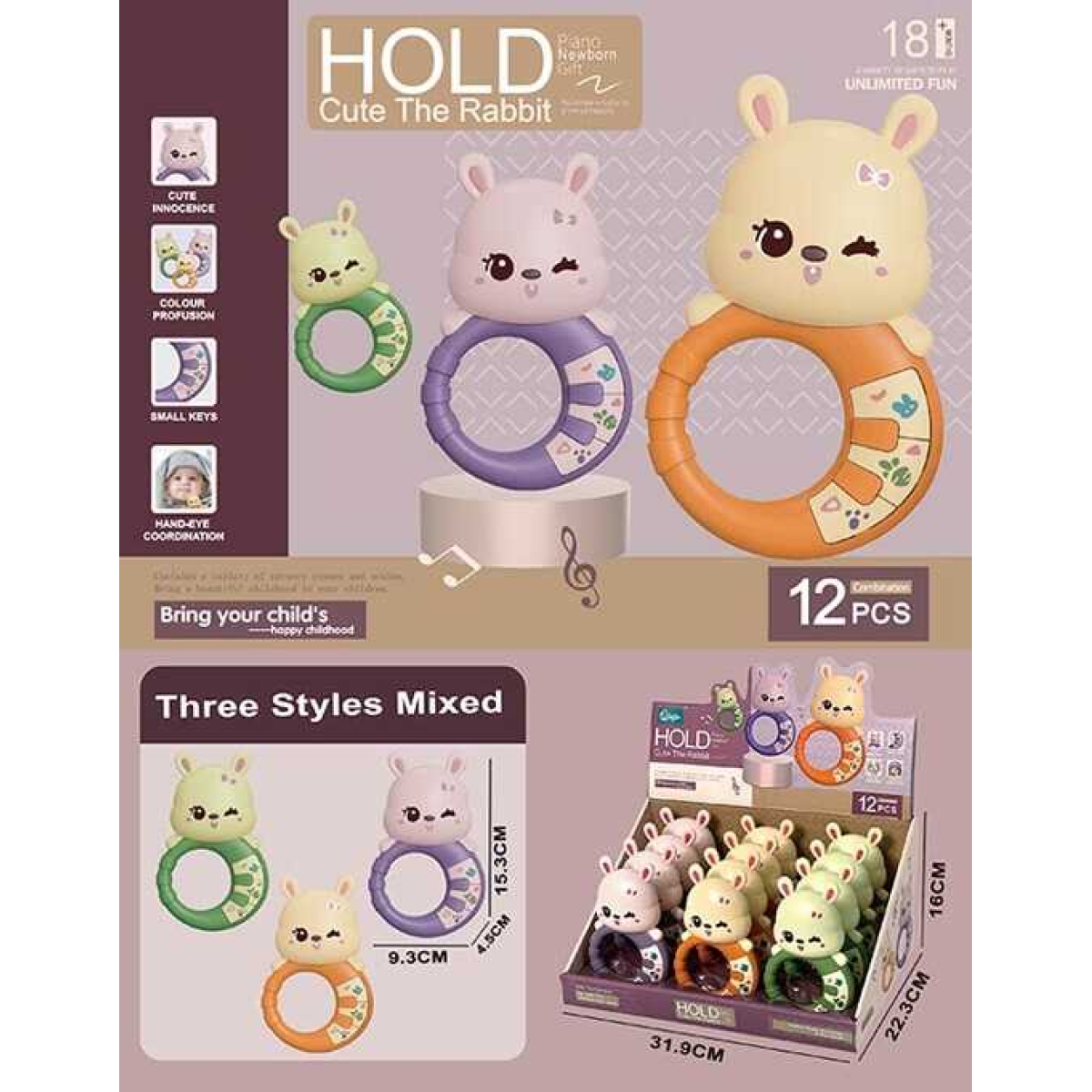 Набір брязкалець HY 628 (16/2) ЦІНА ЗА 12 ШТУК У БЛОЦІ, звук, світло, у коробці