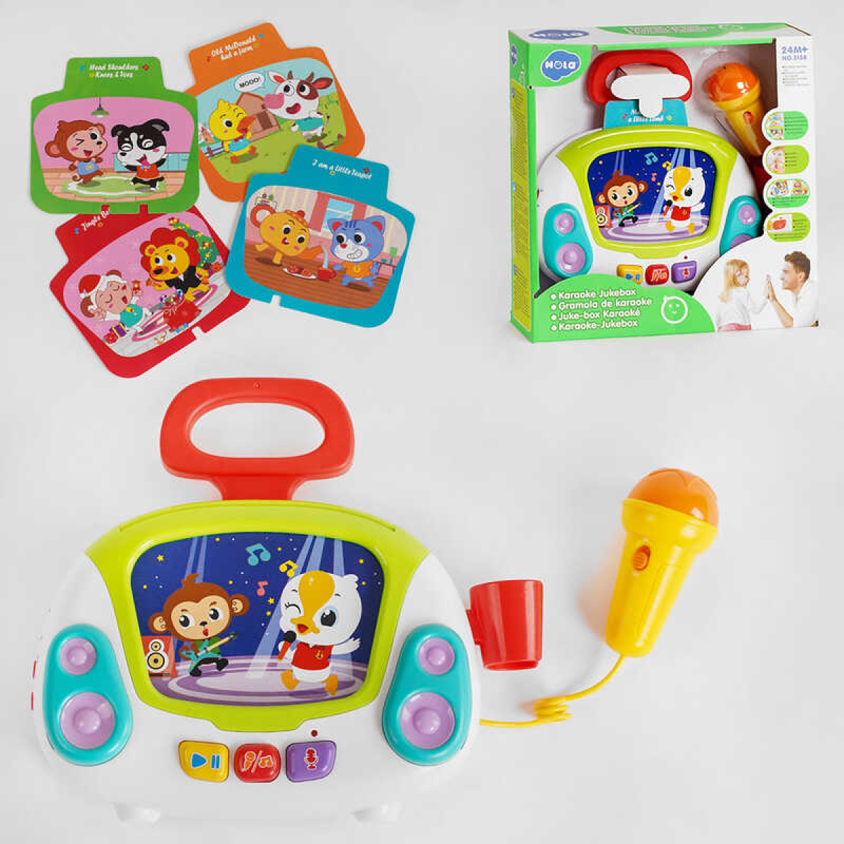 Караоке 3138 (12/2) підсвічування, 4 музичні картки, веселі мелодії. звукозапис, мікрофон, в коробці