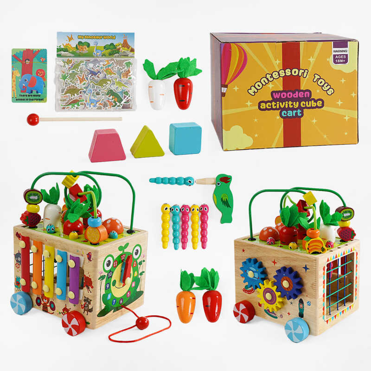 Куб логічний С 68358 (16) каталка, годинник, ксилофон, сортер, шестерні, морквяні грядки, черв’ячки, пальчиковий лабіринт, в коробці