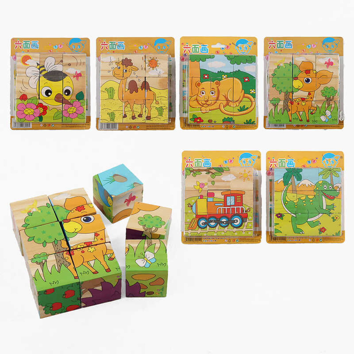 Кубики C 73210 (160) 9 кубиків, дерев“яні, на листі, ВИДАЄТЬСЯ ТІЛЬКИ МІКС ВИДІВ