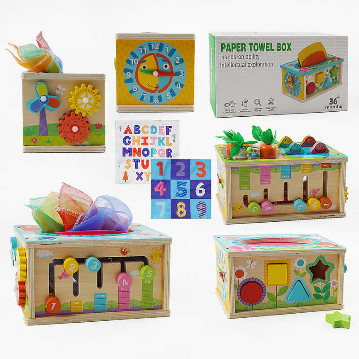 Логічна гра C 65627 (18) дерев’яна, магнітна риболовля, серветки, геометричний сортер, шестерні, годинник, в коробці