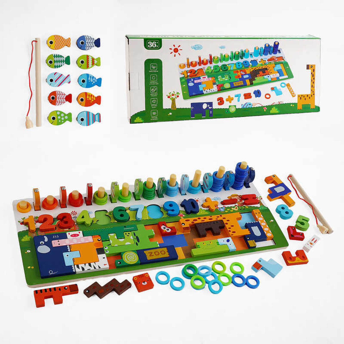 • Логічна дерев’яна дошка C 65715 (36) кілочки, сортер, пазли магнітна риболовля, в коробці
