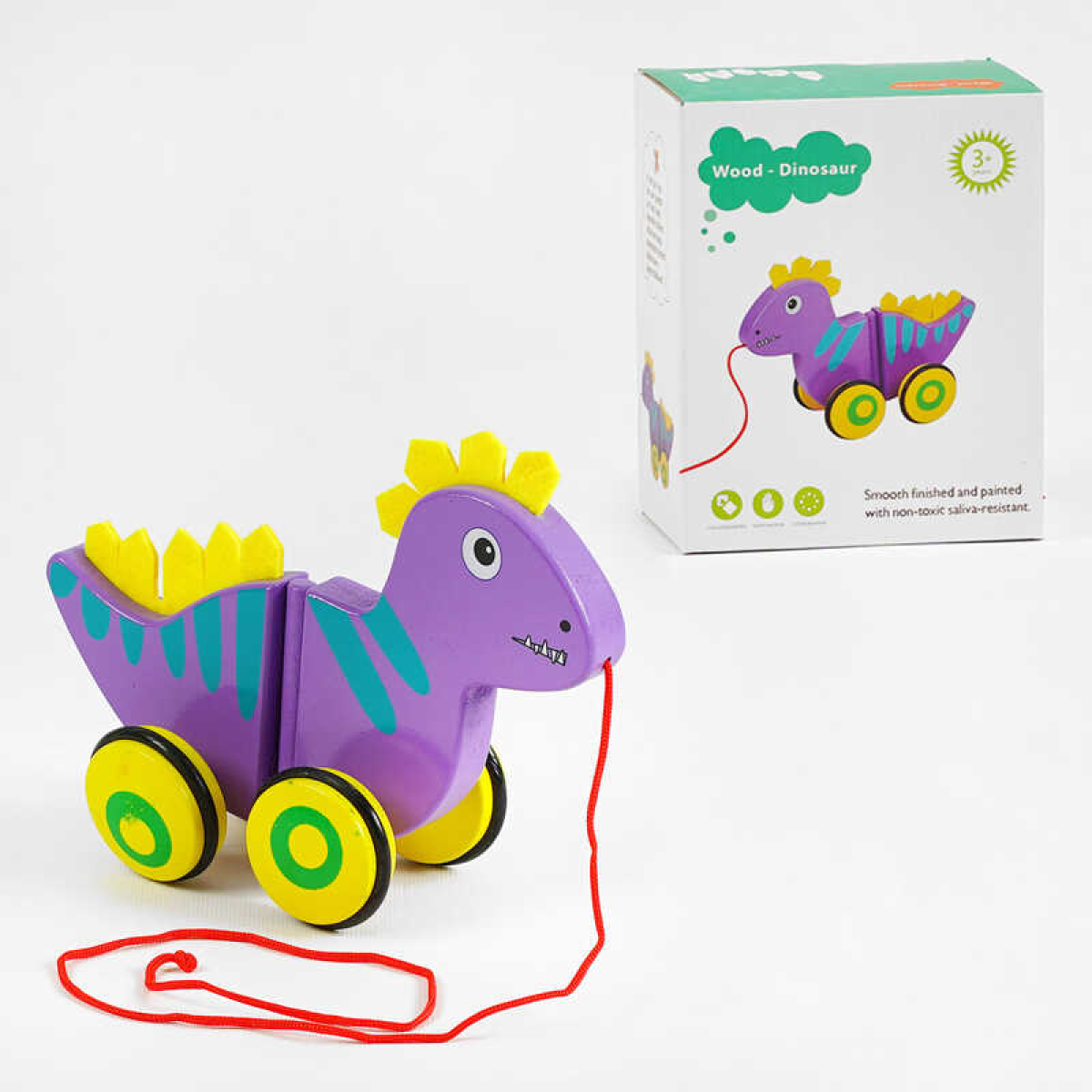 Дерев`яна каталка C 63987 (30) “Динозаврик”, виляє хвостом, фетрові шипи, в коробці