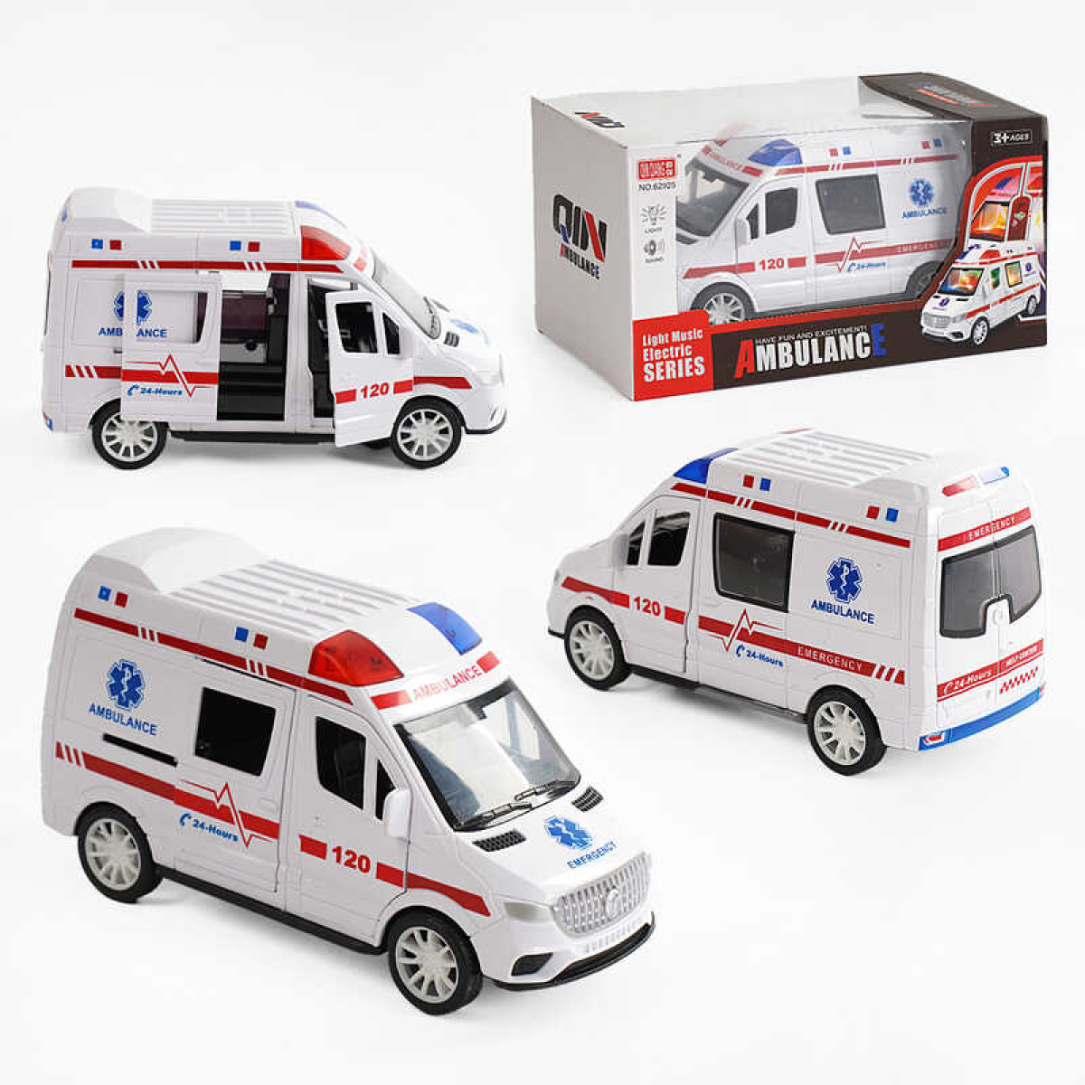 • Машина 62925 (48) мелодія, підсвічування, колесо вільного ходу, гумові шини, відкриваються двері, в коробці
