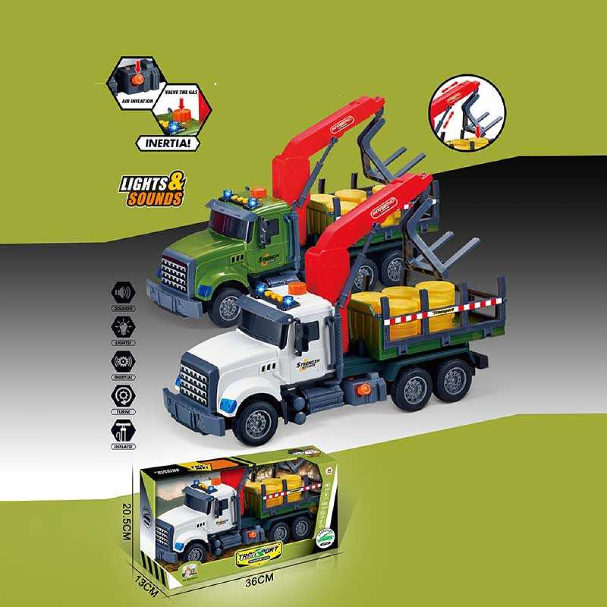 Машина музична 687-49 B (24/2) 2 кольори, “Вантажівка“, підсвічування, звукові ефекти, механічне підіймання стріли, інерція, аксесуари, в коробці, ВИДАЄТЬСЯ МІКС ВИДІВ