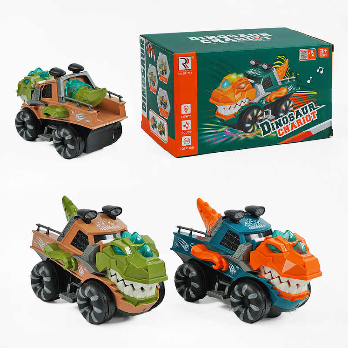 Машинка ZR 171-1 (72/2) “Динозавр“, 2 кольори, світло, звук, колесо вільного ходу, рухливі елементи, в коробці