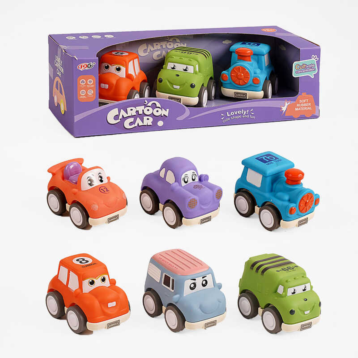 Набір машин 817 B 4B (72/2) 2 види, 3 штуки, інерційний механізм, підсвічування, гумовий корпус, в коробці