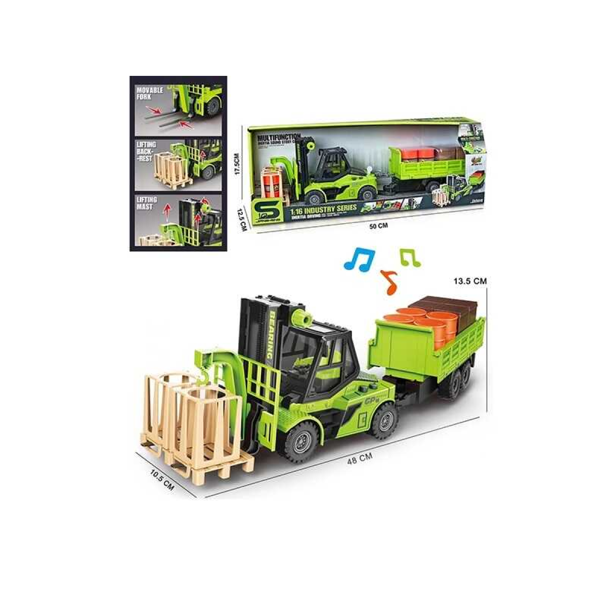 Спецтехніка JS 130 C (24) вилковий навантажувач із причепом, підсвічування, звукові ефекти, інерція, масштаб 1:16, в коробці