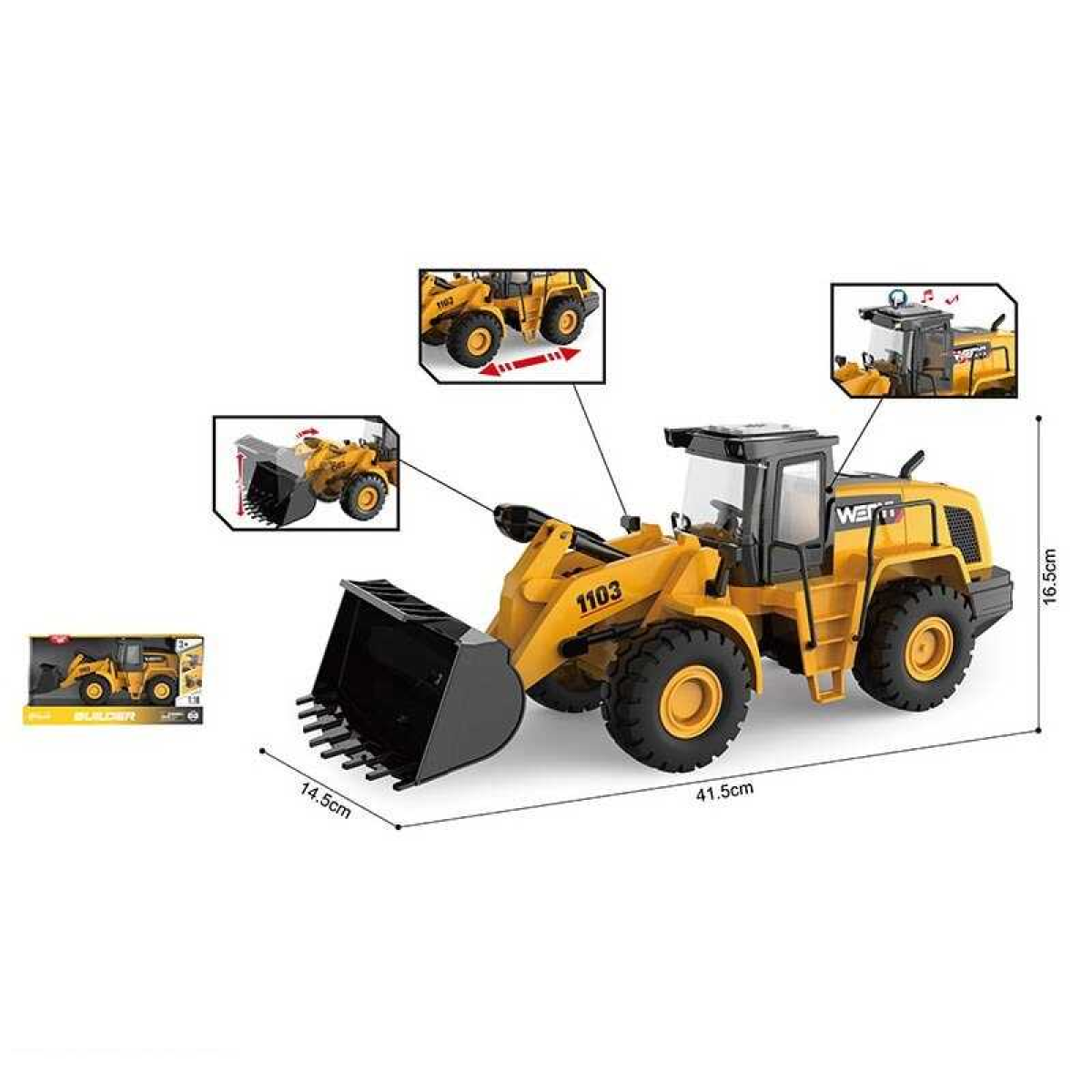 Спецтехніка WY 1103 A (12) “Екскаватор”, звук, підсвічування, інерція, гумові колеса, масштаб 1:10, в коробці