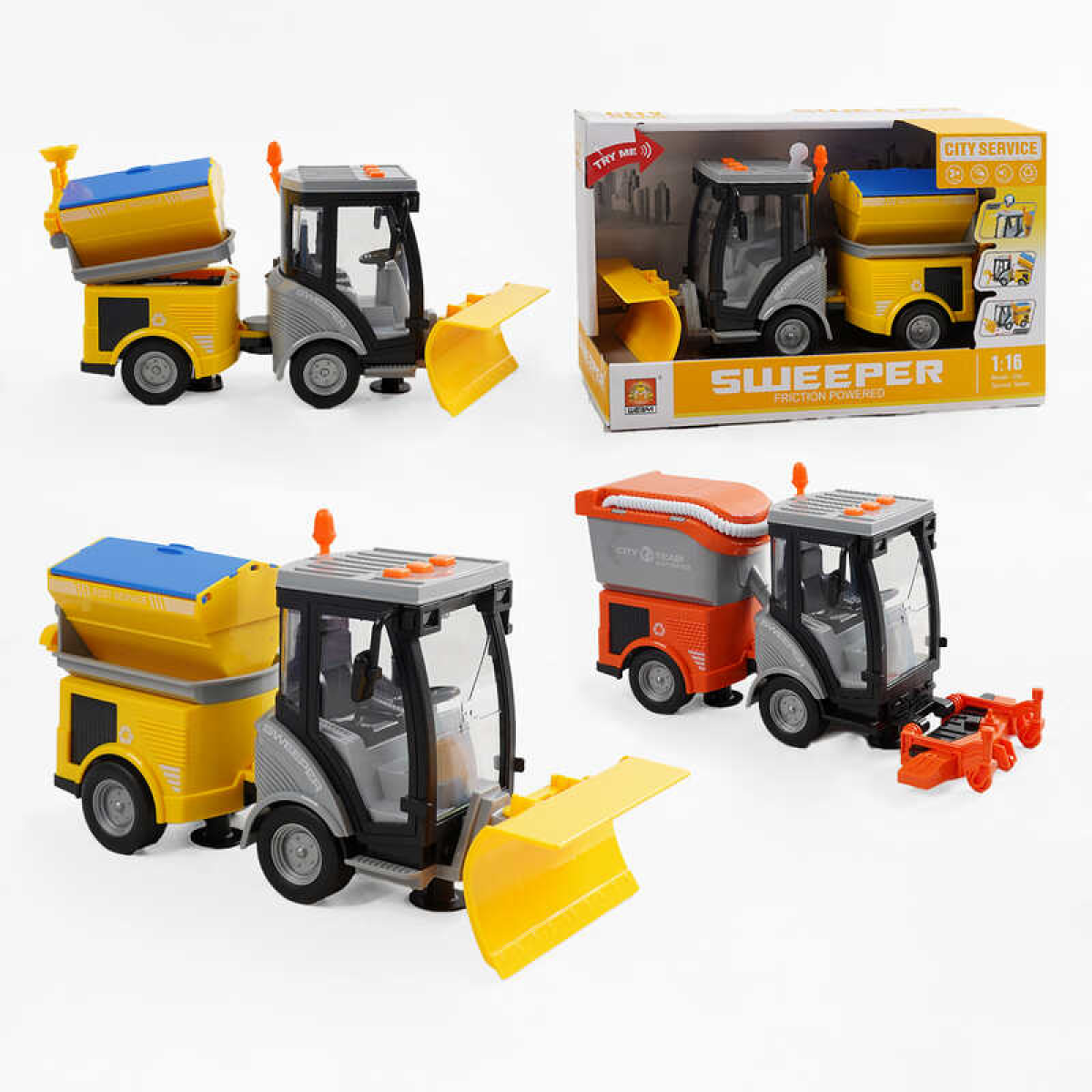 Спецтехніка WY 681 AB (24) “Прибиральна машина“, 2 кольори, рухливе навісне обладнання, світло фар, звуки техніки, сигнал, в коробці