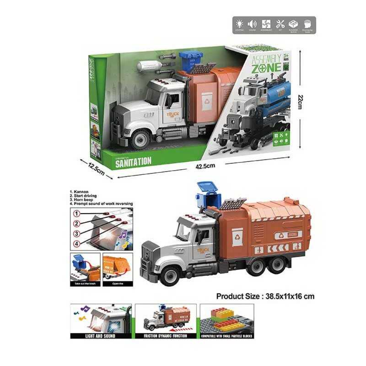 Спецтехніка YW 9083 A (24/2) “Сміттєвоз“, звуки, підсвічування, конструктор, інерція, викрутка, рухомі деталі, в коробці