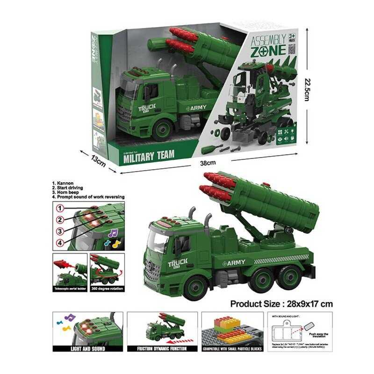 • Спецтехніка YW 9091 D (24/2) військова машина, підсвічування, звукові ефекти, механічне обертання платформи по колу, інерція, тріскачка, муляжі снарядів, у коробці