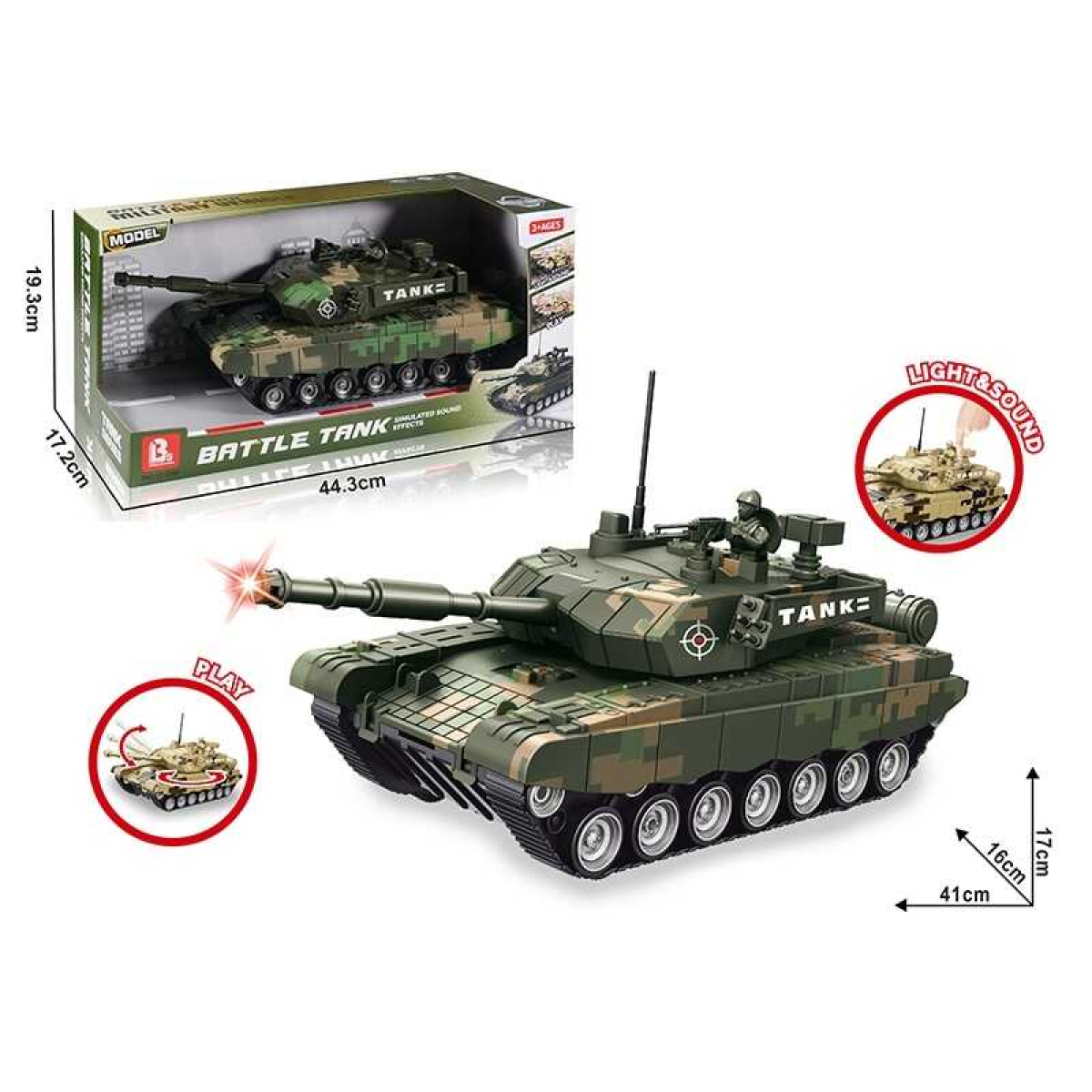 Танк 58024 A (16) довжина 40см, світло, звук, корпус відкривається, башта обертається, рухомий люк та руки солдатика, в коробці