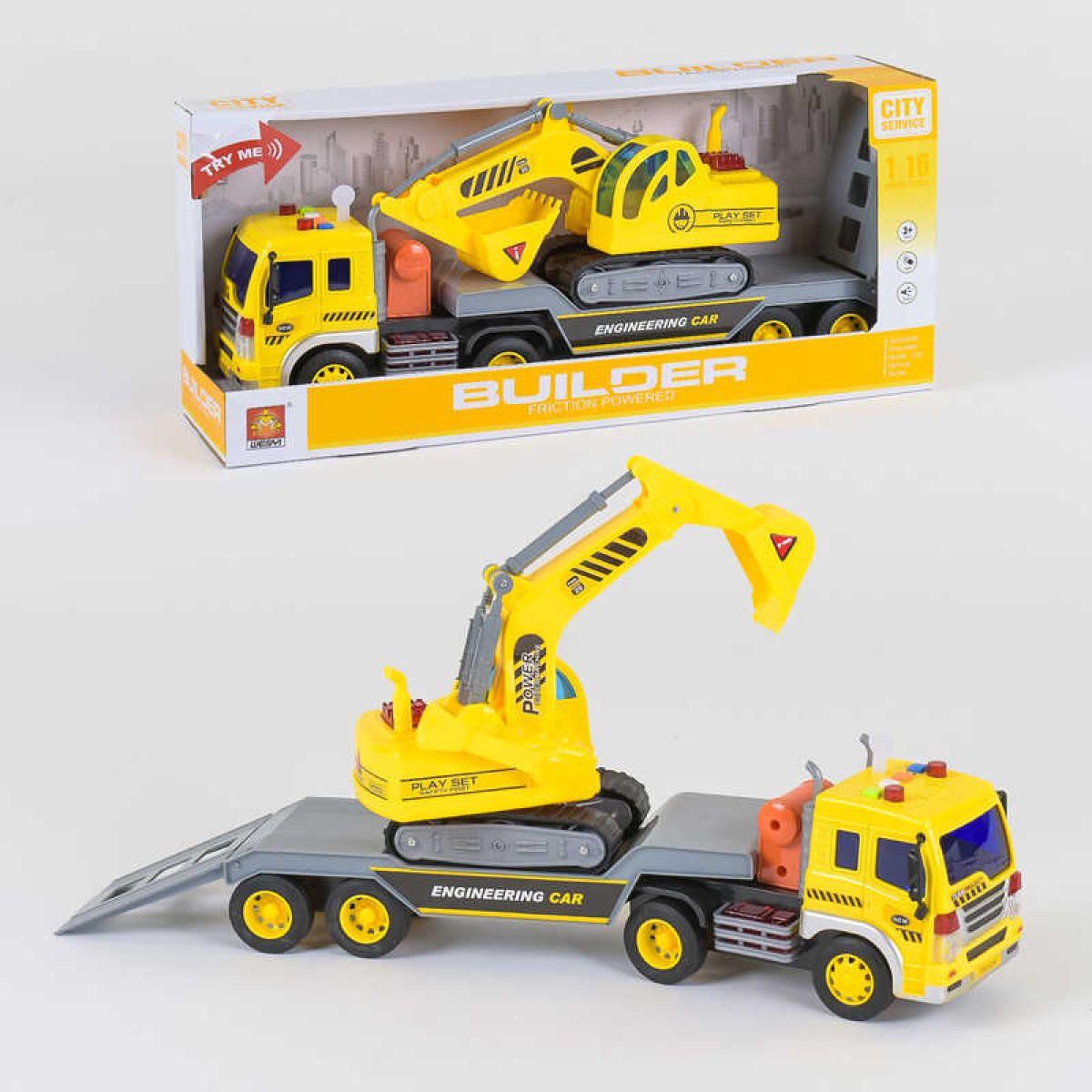 Трейлер з екскаватором WY 571 A (18) інерція, світло, звук, в коробці