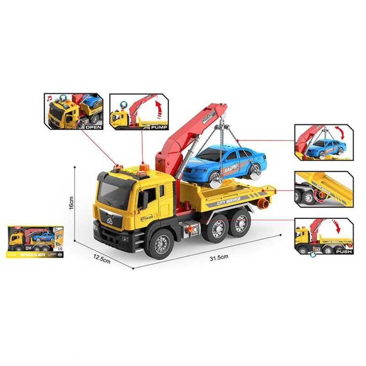 Евакуатор WY 1119 A (18) на батарейках, підсвітка, звук, інерція, довжина 31 см, рухомі деталі, в коробці
