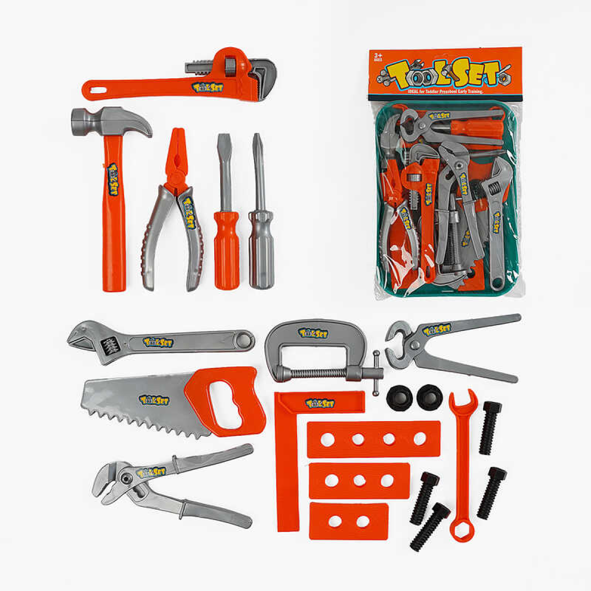 • Набір інструментів 1399-10 (120/2) підставка, викрутка, гайковий ключ, плоскогубці, молоток, пила, лінійка, в пакеті