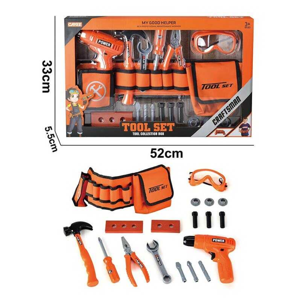 Набір інструментів KY 1068-018 (12/2) 10 елементів, шуруповерт на батарейках, пояс, тренувальні бруски, в коробці
