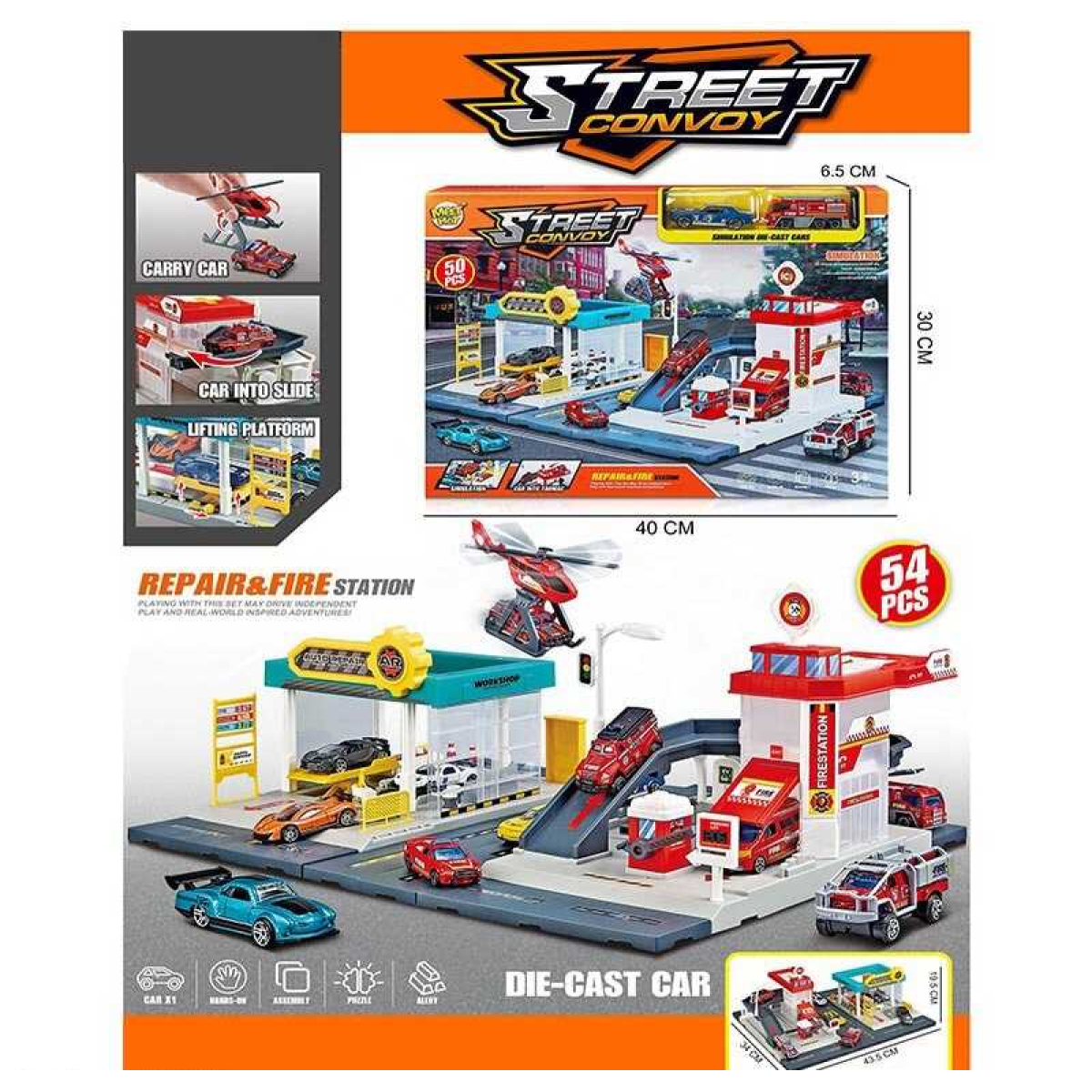• Трек MH 182 (24/2) 54 елементи, наліпки, 2 машинки, вертоліт, в коробці
