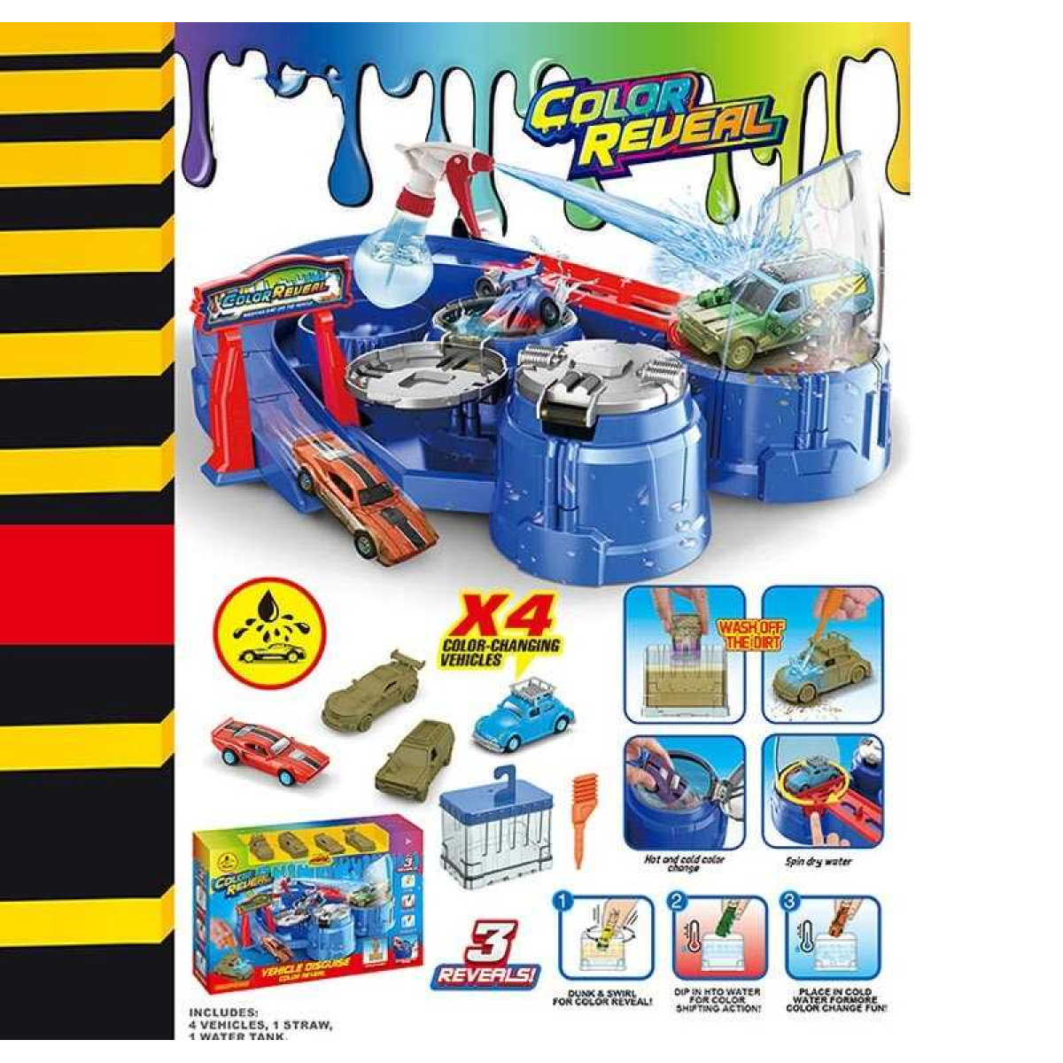 Автомийка SK 773 S (20) 4 металопластикові машинки, змінюють колір, рухливі елементи, пульверизатор, піпетка для водички, в коробці