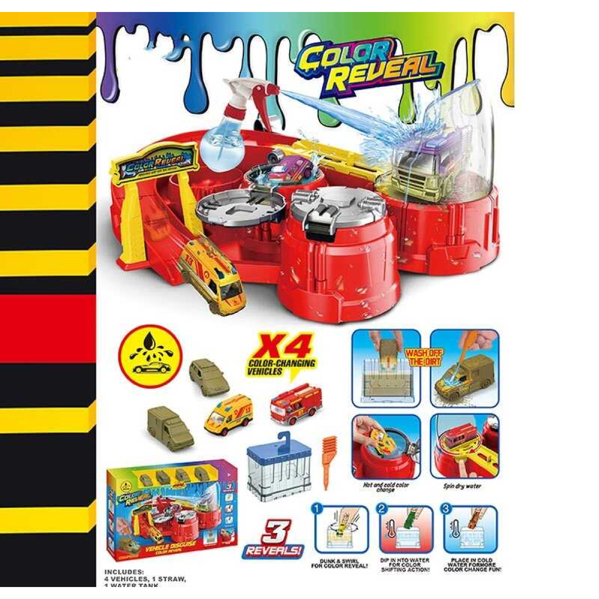 Автомийка SK 773 X (20) 4 металопластикові машинки, змінюють колір, рухливі елементи, пульверизатор, піпетка для водички, в коробці