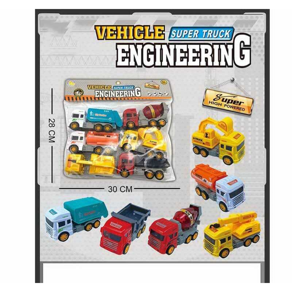 Набір машин 821 E (48) 6 штук, інерційний механізм, рухливі елементи, гумові шини, в пакеті