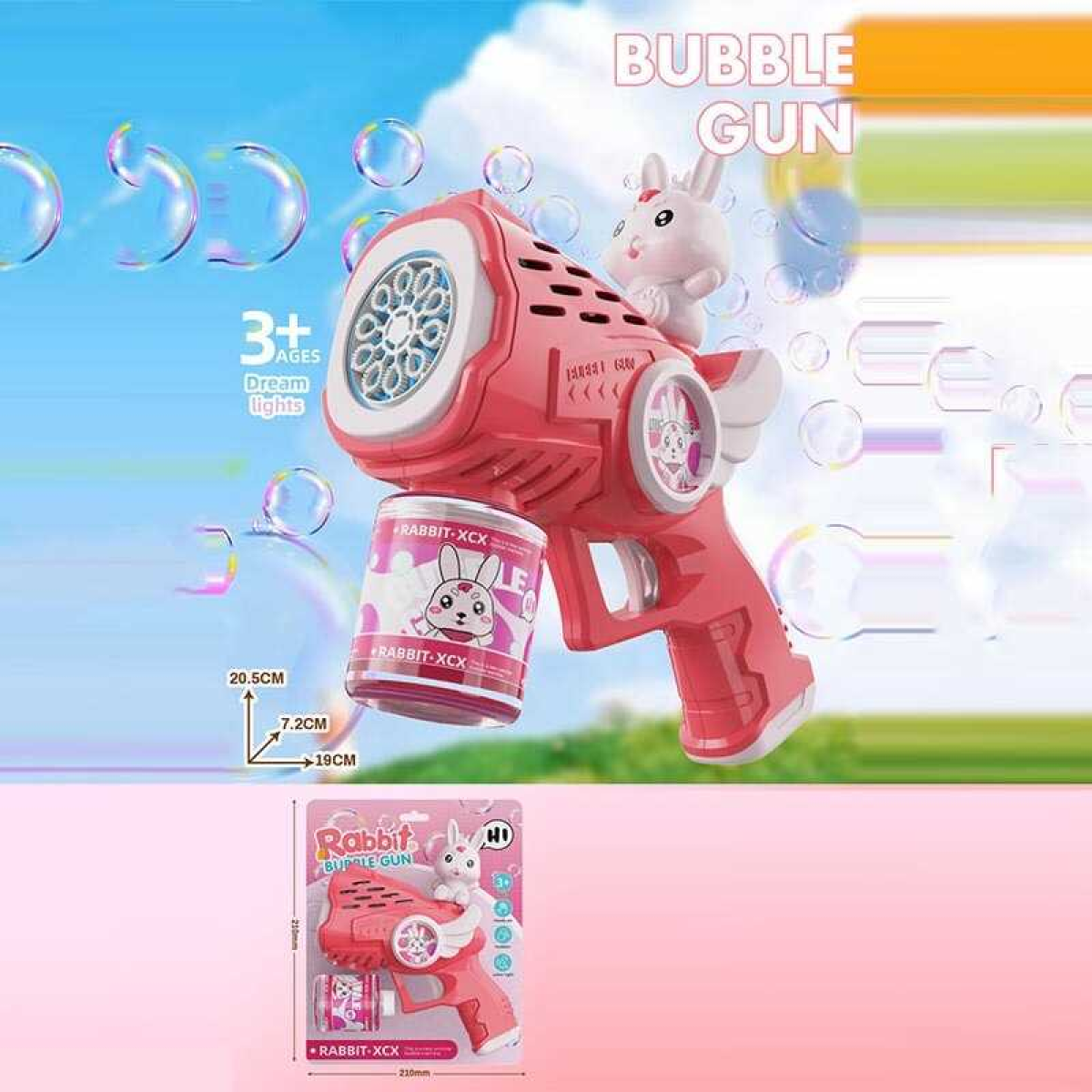 Пістолет з мильними бульбашками 10213 (72/2) підсвічування, автоматичний принцип, пляшечка з мильним розчином, на листі