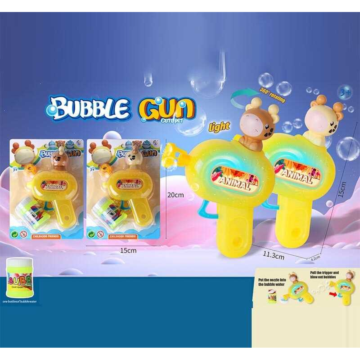 Пістолет з мильними бульбашками 1146 (168/2) 2 види, мильний розчин, 10х15 см, на листі