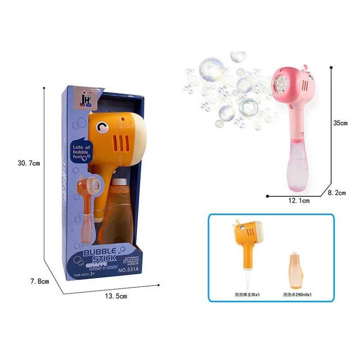 Пістолет з мильними бульбашками 531 A (36) 2 види, підсвічування, мелодія, 2 режими, пляшечка з мильним розчином, автоматичний, в коробці