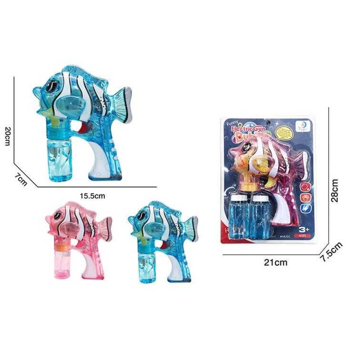 • Пістолет з мильними бульбашками 6214 A (60/2) 2 кольори, “Рибка”, на батарейках, автоматичний принцип роботи, 2 пляшки мильного розчину, музика, підсвічування, на листі