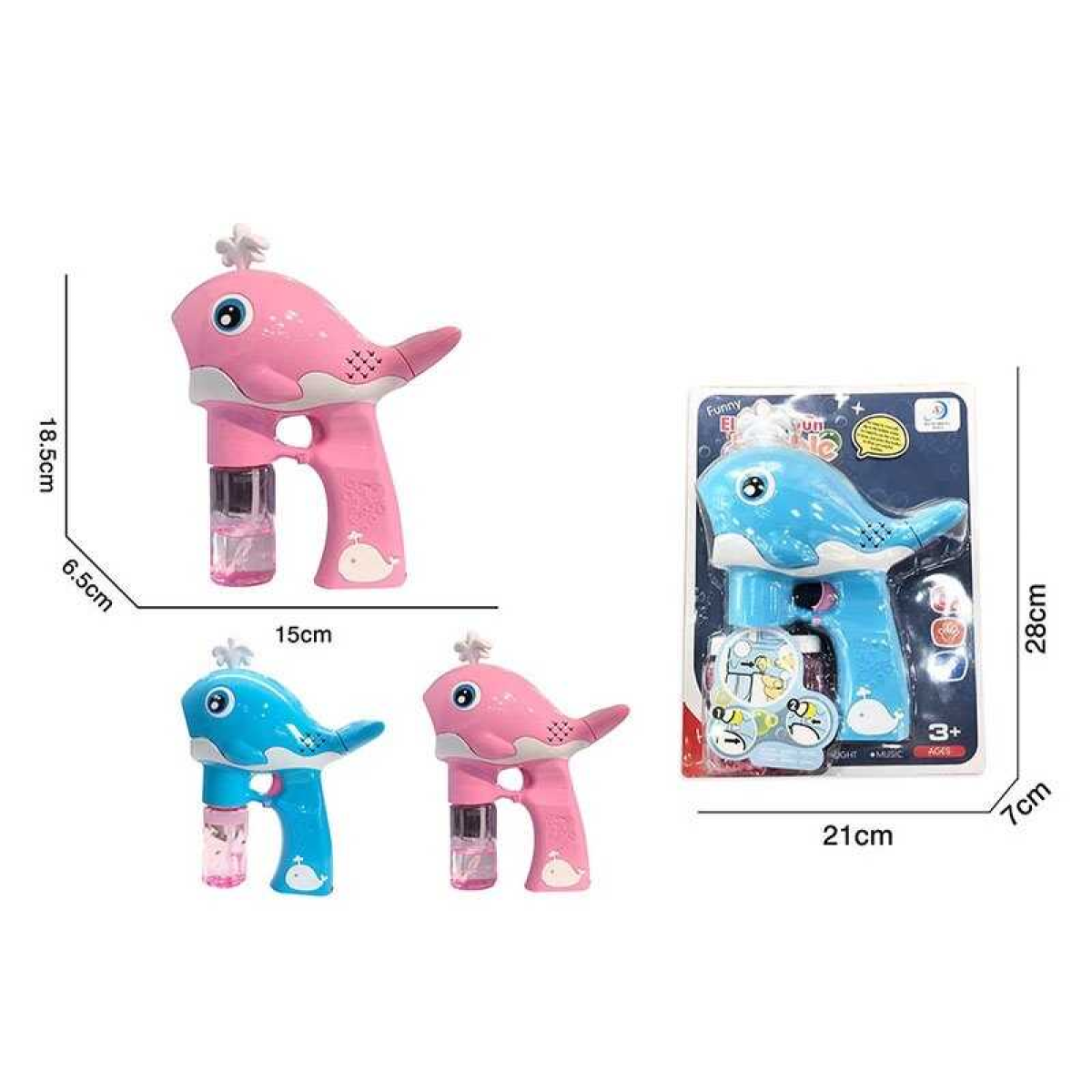 Пістолет з мильними бульбашками 6265 (48/2) 2 кольори, “Кит“, на батарейках, музика, підсвічування, 2 пляшки мильного розчину, автоматичний принцип, на листі