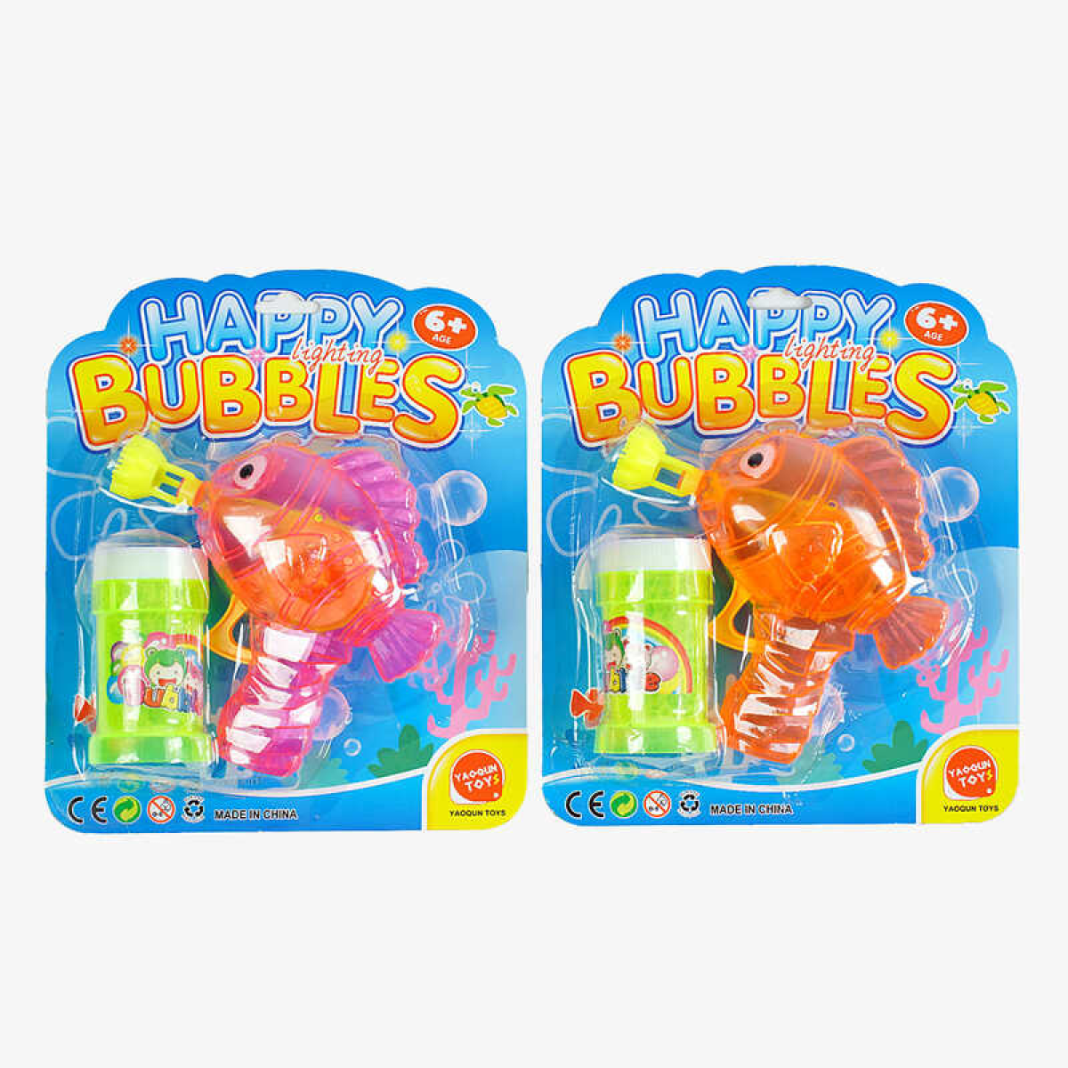 • Пістолет з мильними бульбашками 9905 A (216/2) 2 кольори, механічний, прозорий корпус, пляшечка із мильною рідиною, на листі