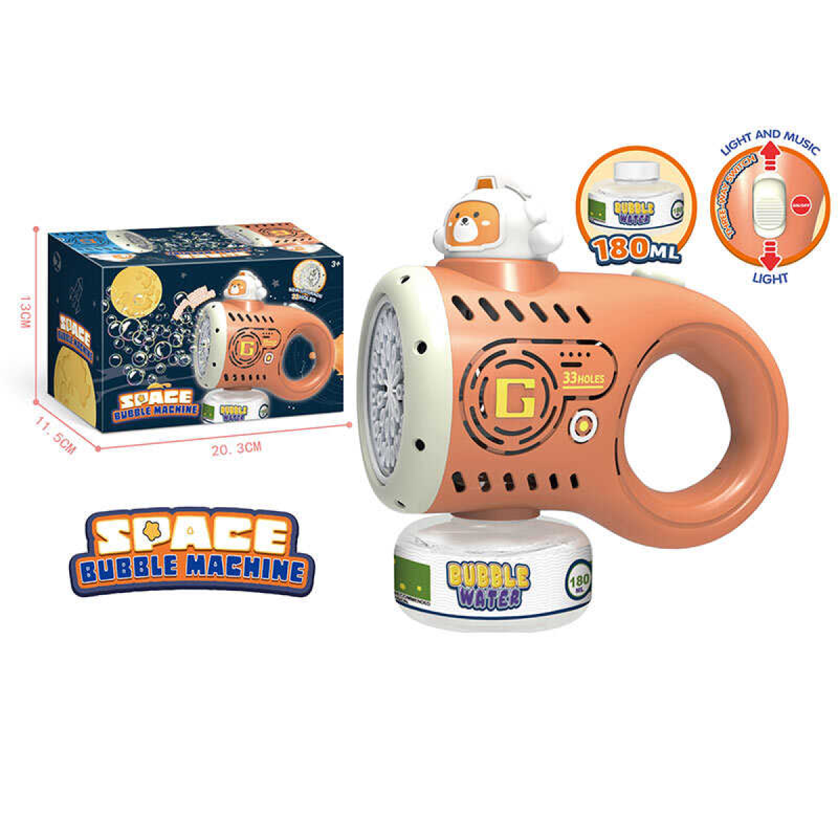 Пістолет з мильними бульбашками A 828 (36/2) автоматичний принцип роботи, акум. 3.7 V, мильний розчин 180мл, USB-кабель, підсвічування, музика, 2 режими роботи, в коробці