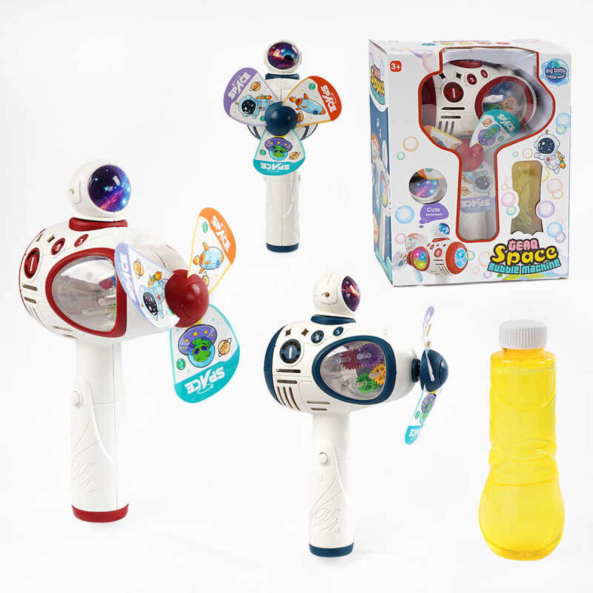 Пістолет з мильними бульбашками WX 536 (48) 2 кольори, світло, мелодія, автоматичний, вітрячок, пляшечка з мильним розчином, в коробці