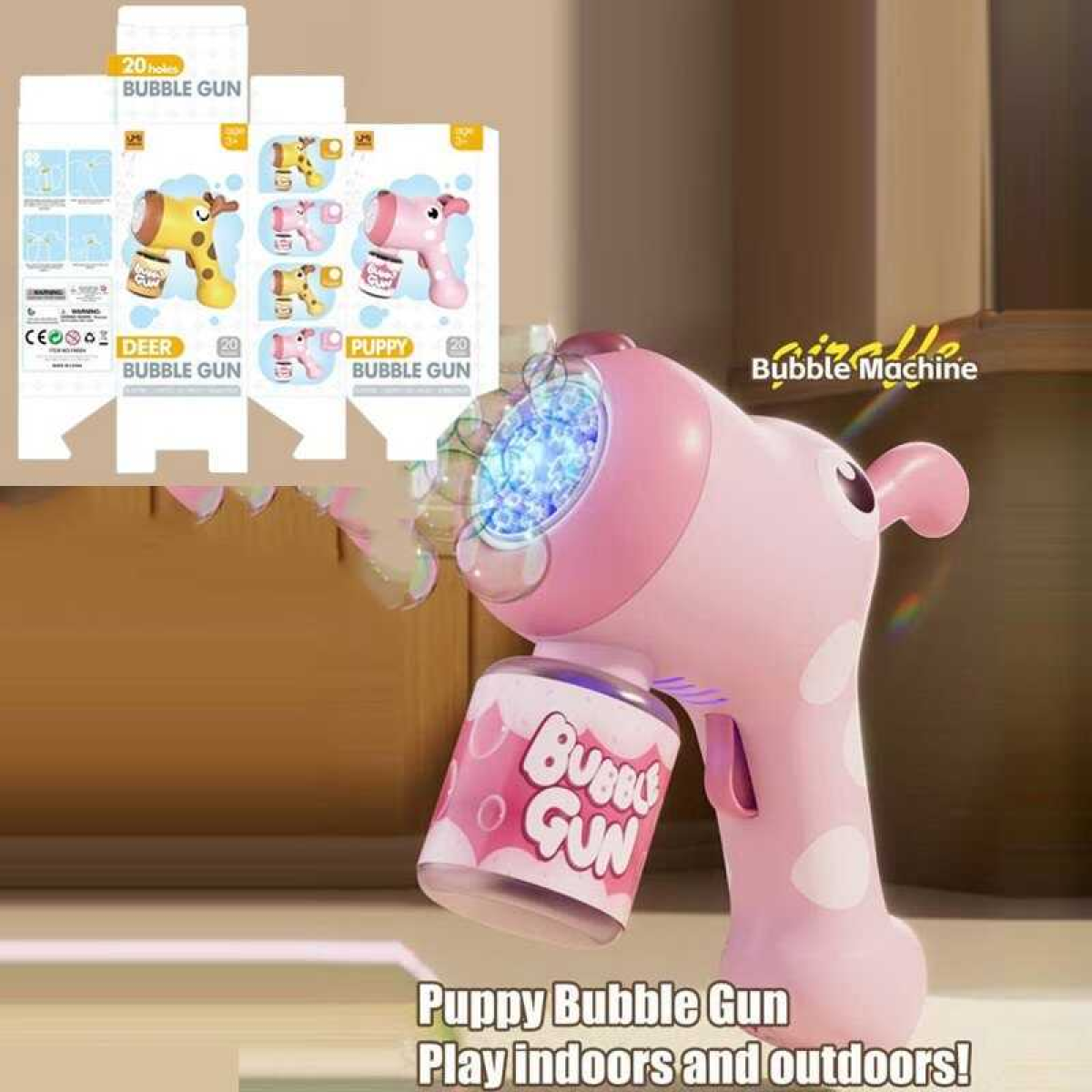 Пістолет з мильними бульбашками YM 004 (72) 4 види, підсвічування, автоматичний принцип, пляшечка з мильним розчином, в коробці ВИДАЄТЬСЯ МІКС ВИДІВ