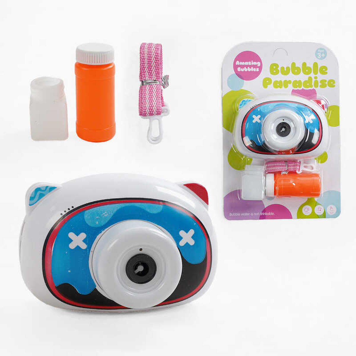 Камера з мильними бульбашками 3939-91 A (96/2) на батарейках, підсвічування, звукові ефекти, пляшечка з рідиною для бульбашок, ремінець з карабіном, на листі